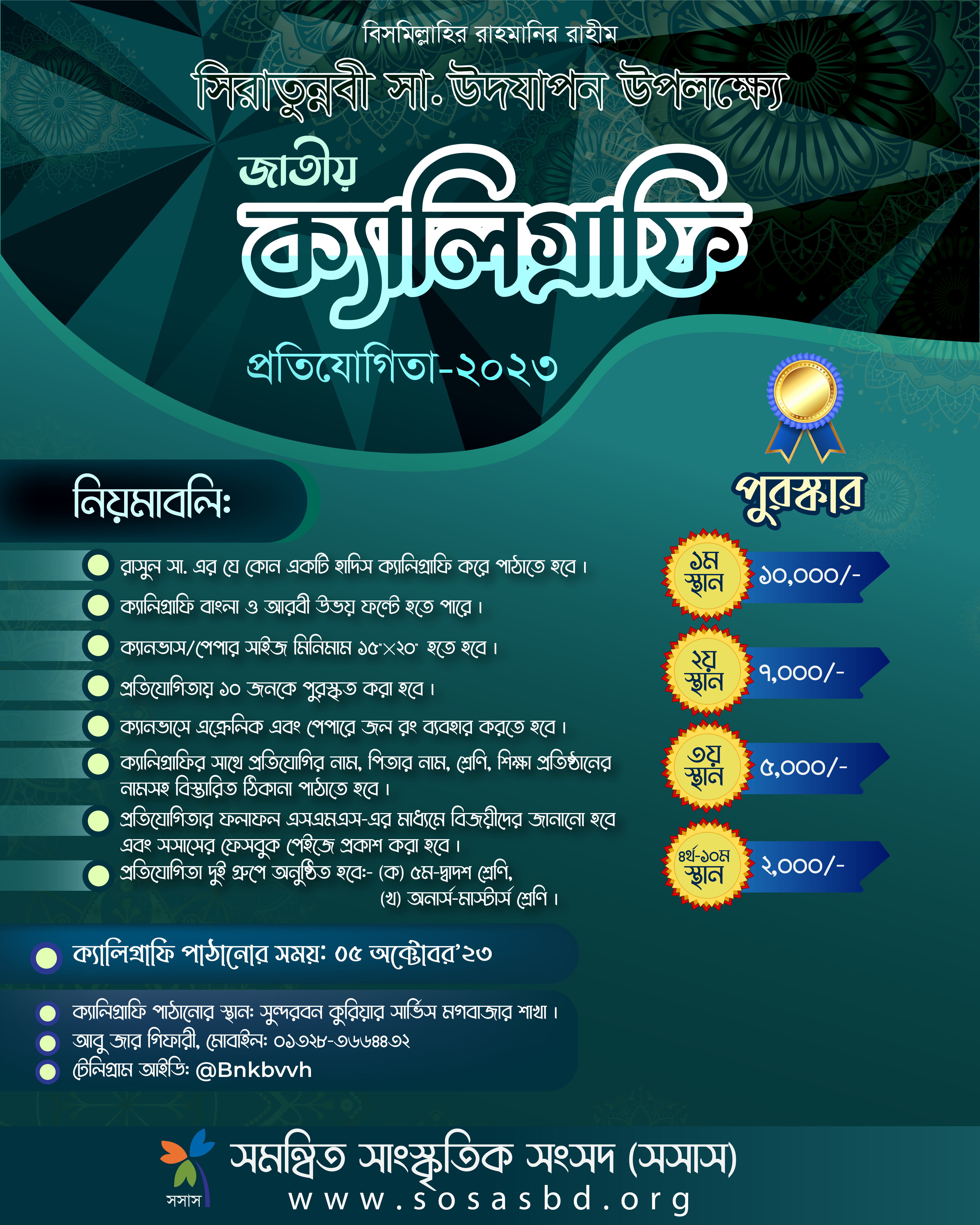 ০৭। ক্যালিগ্রাফি পাঠানোর সর্বশেষ সময়: ০৫ অক্টোবর’২৩।